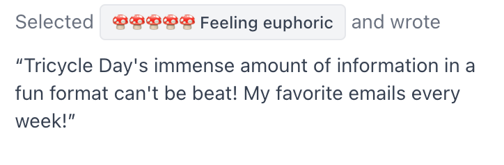 Welcome to Tricycle Day. Think of our psychedelics newsletter as your personal internet forager. Every week, we sniff out all the truffles, toss the toxic decoys, and present you with a basket of magical goodies. 💎