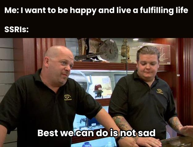 Look, we have no beef with SSRIs. Certainly nothing against people who take them. You won’t catch Tricycle Day pill-shaming anyone.