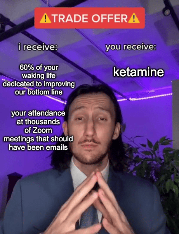 To all the HR managers reading this newsletter thinking, “yay, now I can offset all the mental health damage my toxic workplace has caused,” I’m gonna stop you right there. Don’t be this guy.